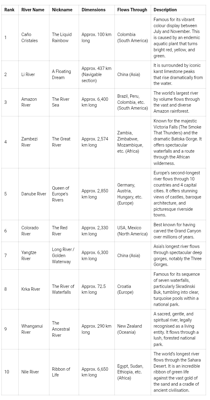 The world is home to spectacular rivers, each with unique beauty. From Colombia’s Caño Cristales, famous for its five-colour aquatic plants, to China’s Li River with its mystical karst peaks, these waterways are natural masterpieces. Rivers like the Amazon and Danube offer incredible scale, biodiversity, and historical significance.
