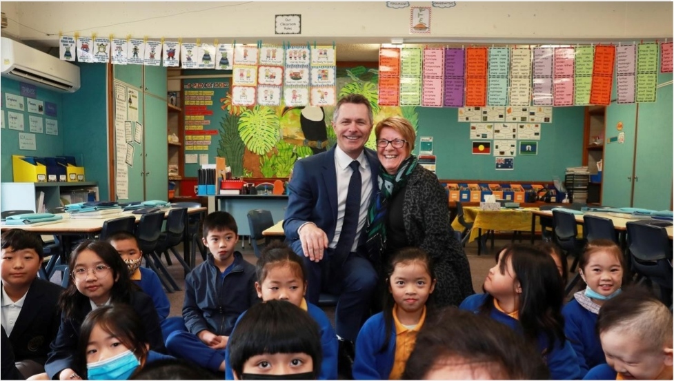 Federal Education Minister Jason Clare visits Cabramatta Public School in western Sydney, his old primary school. John Feder/The Australian.