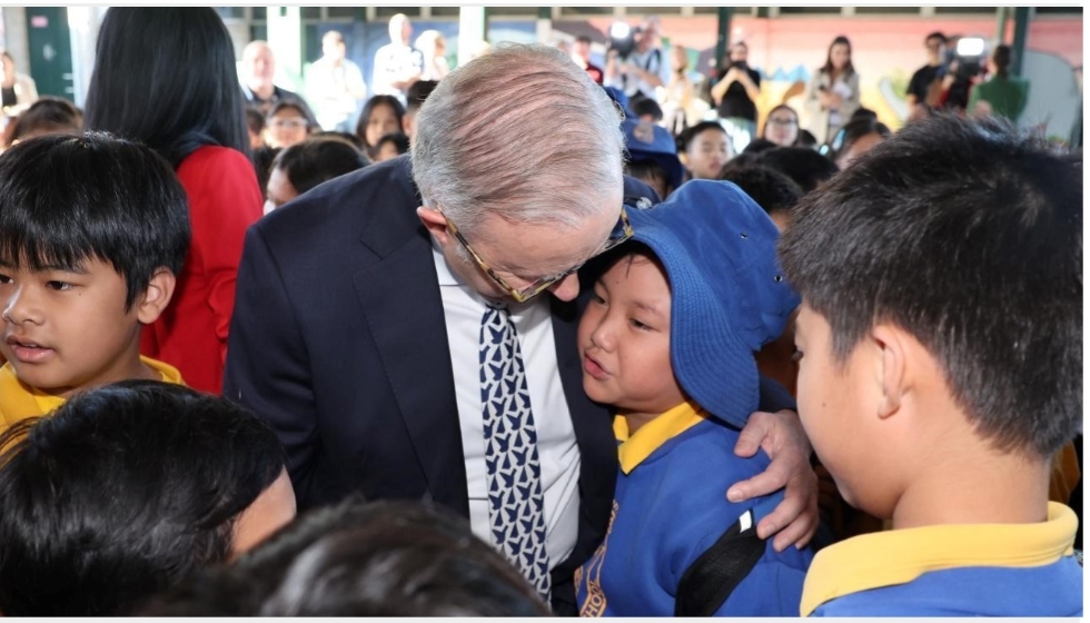 Prime Minister Anthony Albanese visits a school in NSW while on the campaign trail. Picture: Jason Edwards/NewsWire