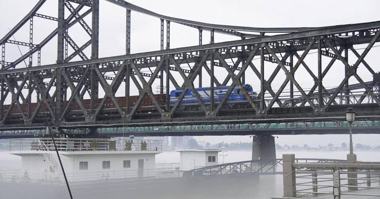 A cargo train from North Korea arrives in the Chinese border city of Dandong, Liaoning Province, on July 6, 2025