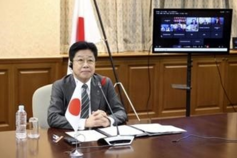 Finance Minister Katsunobu Kato attends an online meeting of the Group of Seven finance ministers on Oct. 1, 2025