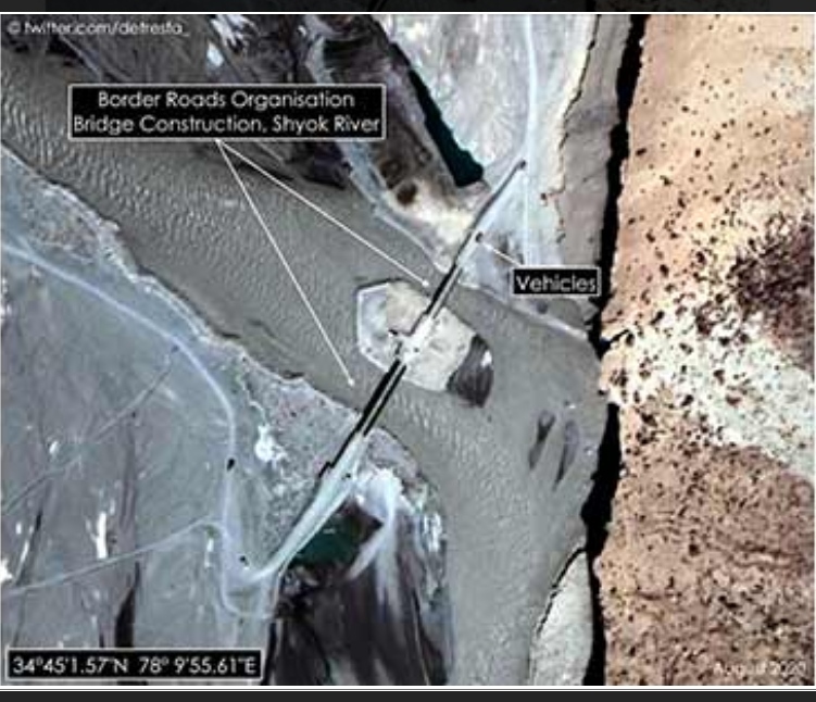 A satellite image of the bridge BRO built near the Galwan Valley last year, during the standoff with China in the area, can be seen.