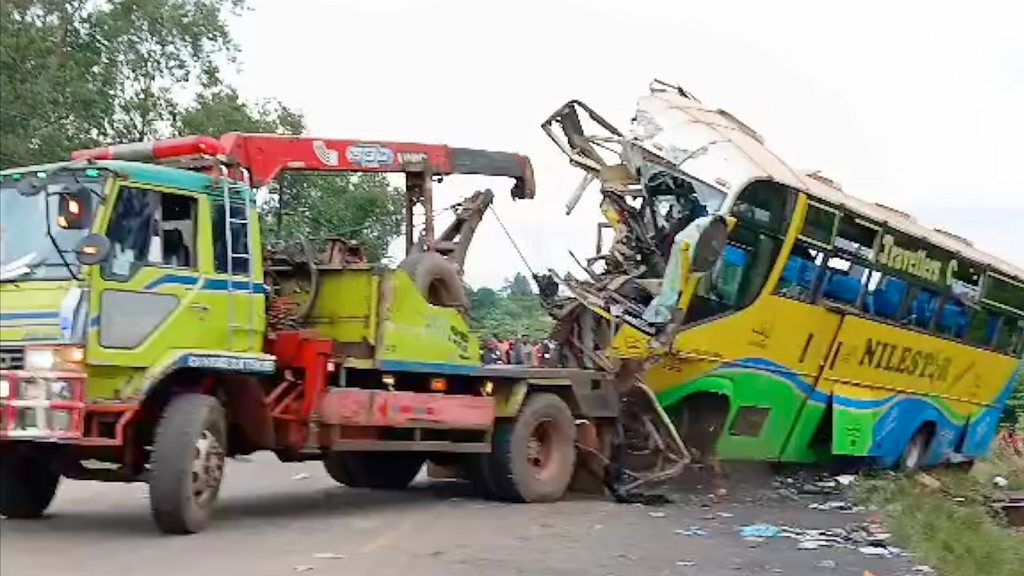 The crash occurred when two buses travelling in opposite directions “met head on” while trying to overtake two other vehicles – a lorry and a car – on the Kampala-Gulu Highway at 00:15 local time (21:15 GMT), the Uganda Police Force said.