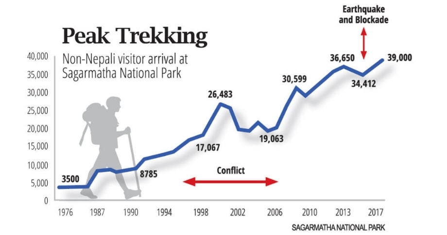 Figures from 2016 show that trekking in Everest rose by over 9,000 visitors, contributing to significant employment generation and economic recovery for the local community. Climbing fees are $11,000 per non-Nepali mountaineer for expeditions from the Nepal side, and $8,000 from the Chinese side. But scaling Mt Everest from Nepal has been attractive to climbers because of more reliable access to the mountain, laxer regulations on the number of climbers, alongside the cultural experience of living and breathing with the local people.