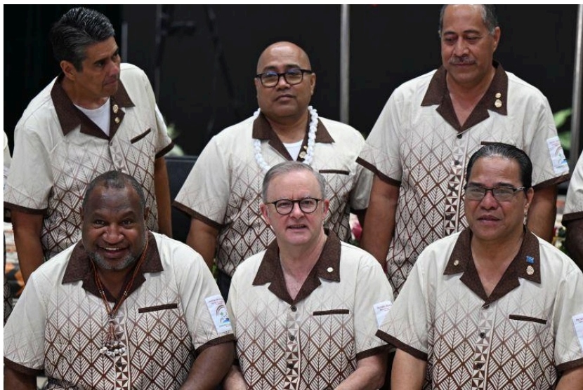 Australian Prime Minister Anthony Albanese (centre) at the Pacific Islands Forum in Tonga