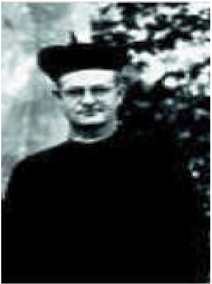 Let me describe him in some detail. He was wearing a spotless white cassock, which I was to learn later was the usual and only dress of all the Jesuit Fathers when they moved in public. He was quite BIG and TALL. His cheeks were pink and his skin as white as snow. His hair was blond-grey and curly and his beautiful grey-blue eyes were appraising me from behind his spectacles with so much love and compassion that I stood transfixed during those eventful moments of my life.